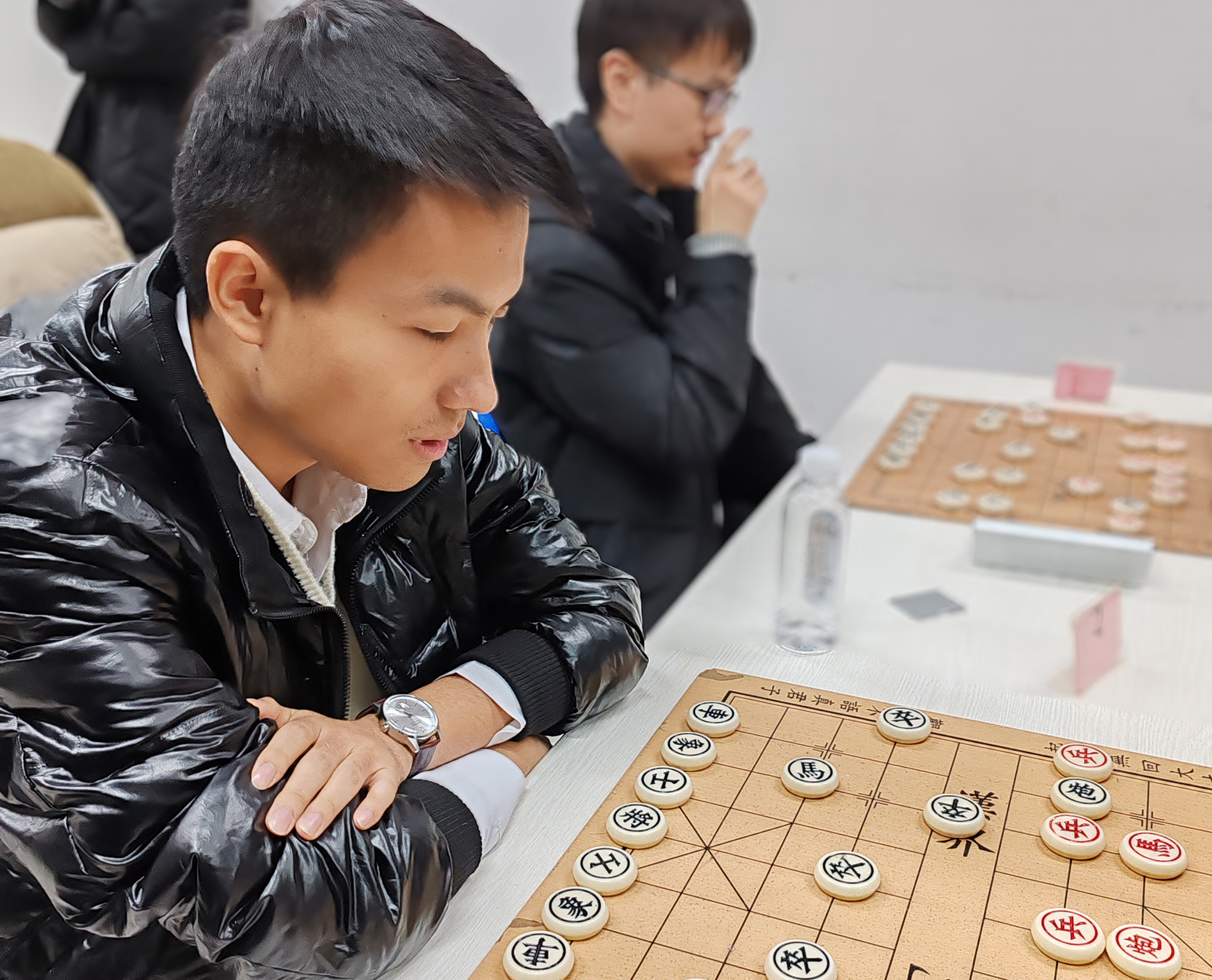 In the first two rounds of the competition, NKU won 6-2 against PKU and THU won 7-1 against PKU, making NKU and THU the finalists. In front of the Grand Master Zheng Weitong, Shang Peifeng played wisely and always maintained the advantage. The idea of flying the “elephant” to mobilize the rook at the side in one move demonstrated his profound skills. In the end, the two sides almost used up their time and reached a draw. In the other three matches, NKU won 1 and drew 2, narrowly defeating THU 5-3 to win the championship.