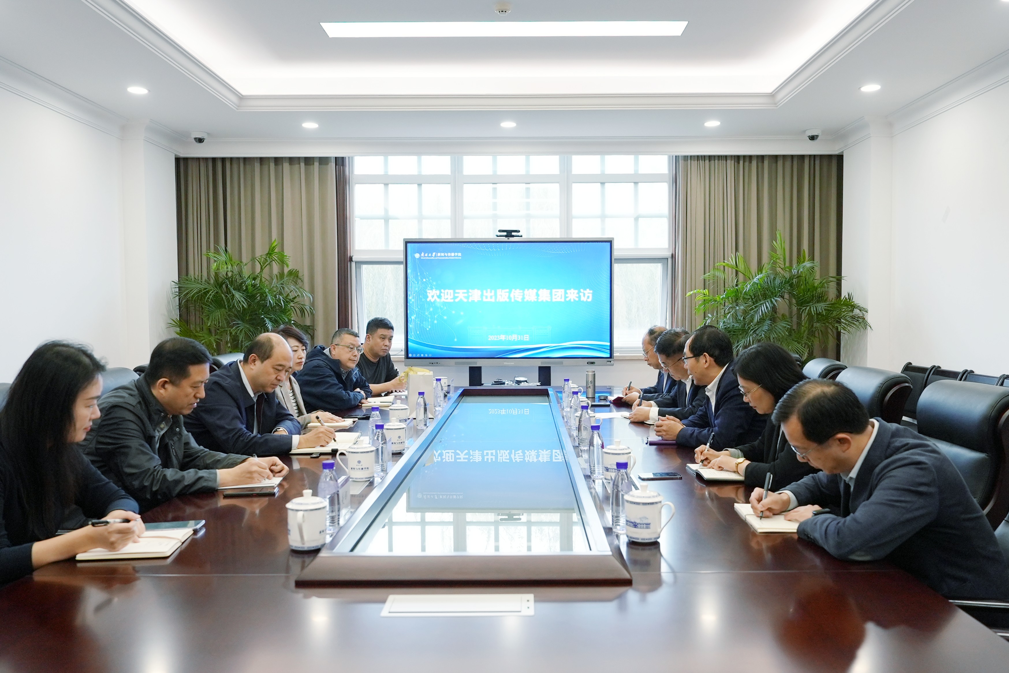 Ban Feng, Secretary of the CPC Committee and Chairman of Tianjin Publishing and Media Group Co., Ltd. (TPMG), and his fellow workers visited NKU on October 31. Niu Wenli, Deputy Secretary of the CPC Nankai University Committee, met with guests at Xiushan Hall of Jinnan Campus. Both sides exchanged their views on theoretical research in publishing, talent cultivation, and further cooperation between the academic and industry communities.