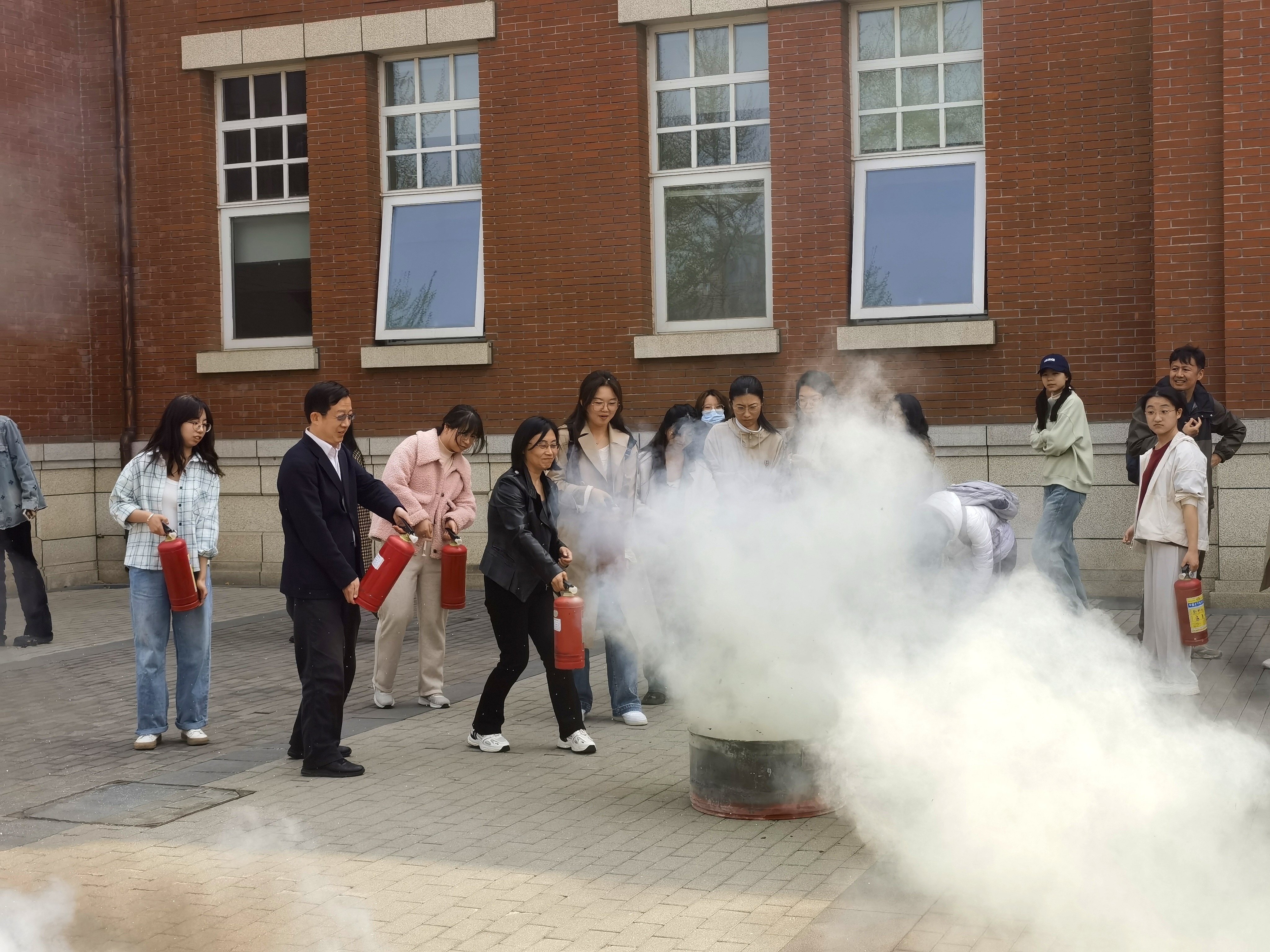 Zhang Qi instructed how to use fire-fighting appliances such as the dry powder fire extinguisher, carbon dioxide fire extinguisher, fire blanket and gas mask. Teachers, students and property staff used the fire extinguishers under the professional guidance. Through the hands-on experience and on-site interaction, teachers and students gained a deeper understanding of fire safety.