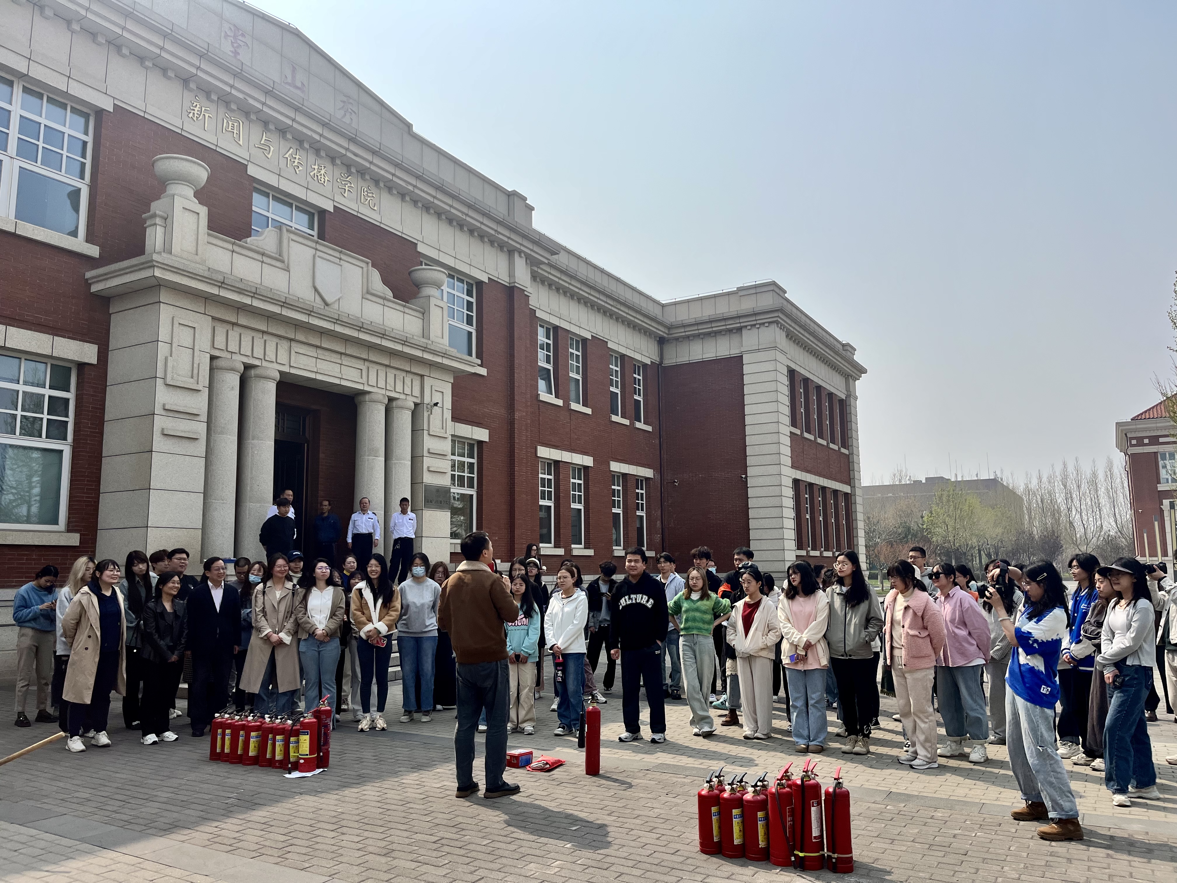 In order to further improve the safety awareness of teachers and students and help them master fire knowledge and evacuation skills, the School of Journalism and Communication organized a fire drill at Xiushan Hall on April 11. Ma Changhong, Secretary of the CPC Committee of the School, and Chen Peng and Li Hui, leaders of the School, were present at the drill. The drill was chaired by Chen Peng and attended by about 70 teachers, students and property staff of the School.