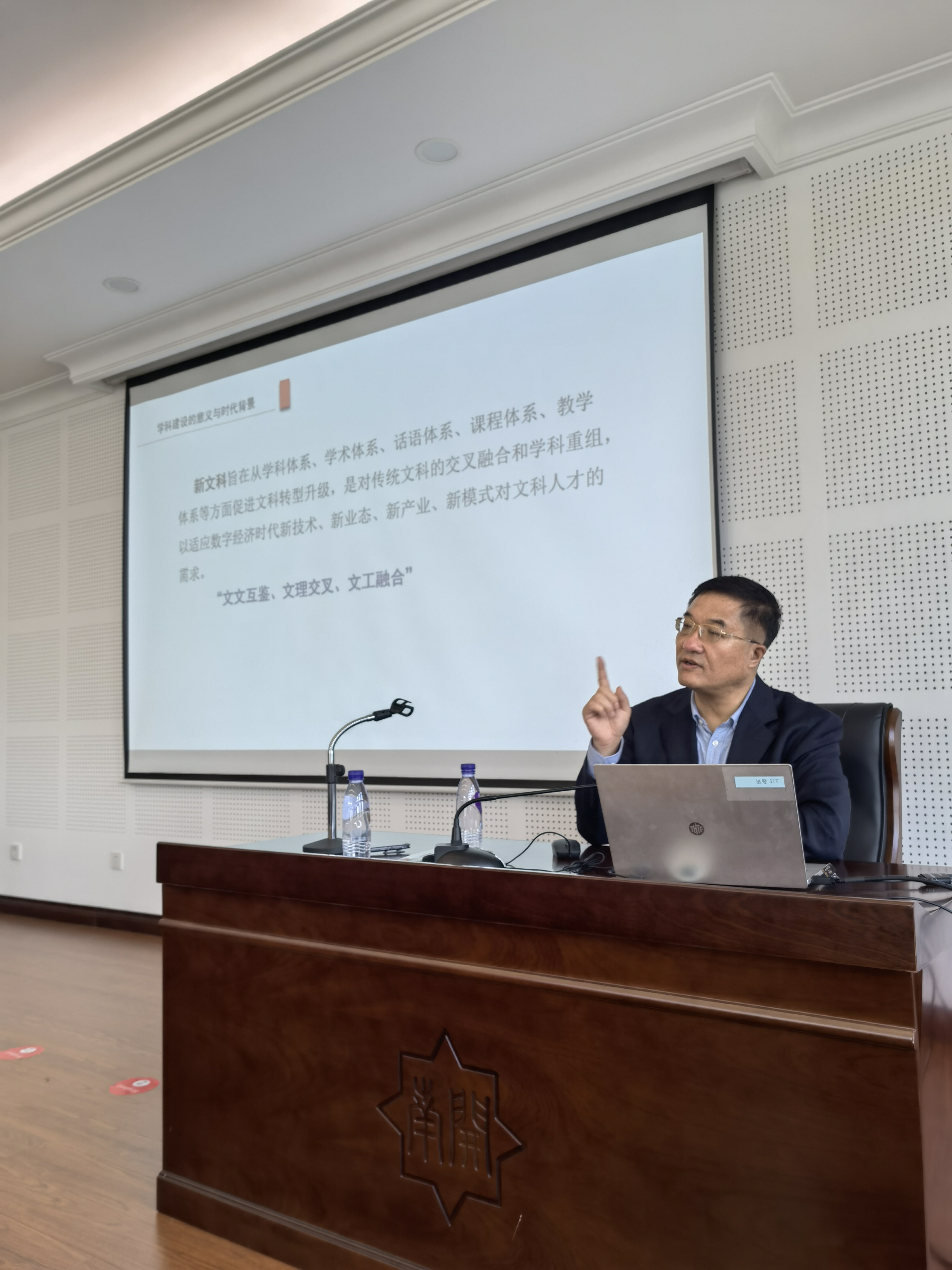 The School has launched the NKU Communication Lecture series activity, in order to further promote academic exchanges between the School and domestic and international publishing research fields, focus on cutting-edge academic trends, enhance the academic influence of the School, and implement the relevant requirements of the joint construction work of the Publicity Department of the CPC Central Committee and the Publicity Department of the CPC Tianjin Municipal Committee. The first lecture was held on April 18 at Xiushan Hall by Qi Dexiang, Professor of NKU School of Journalism and Communication, and Executive Vice Dean of NKU Publishing Research Institute, on the theme of “taking disciplinary construction as the guide to promote the high-level development of the School”.