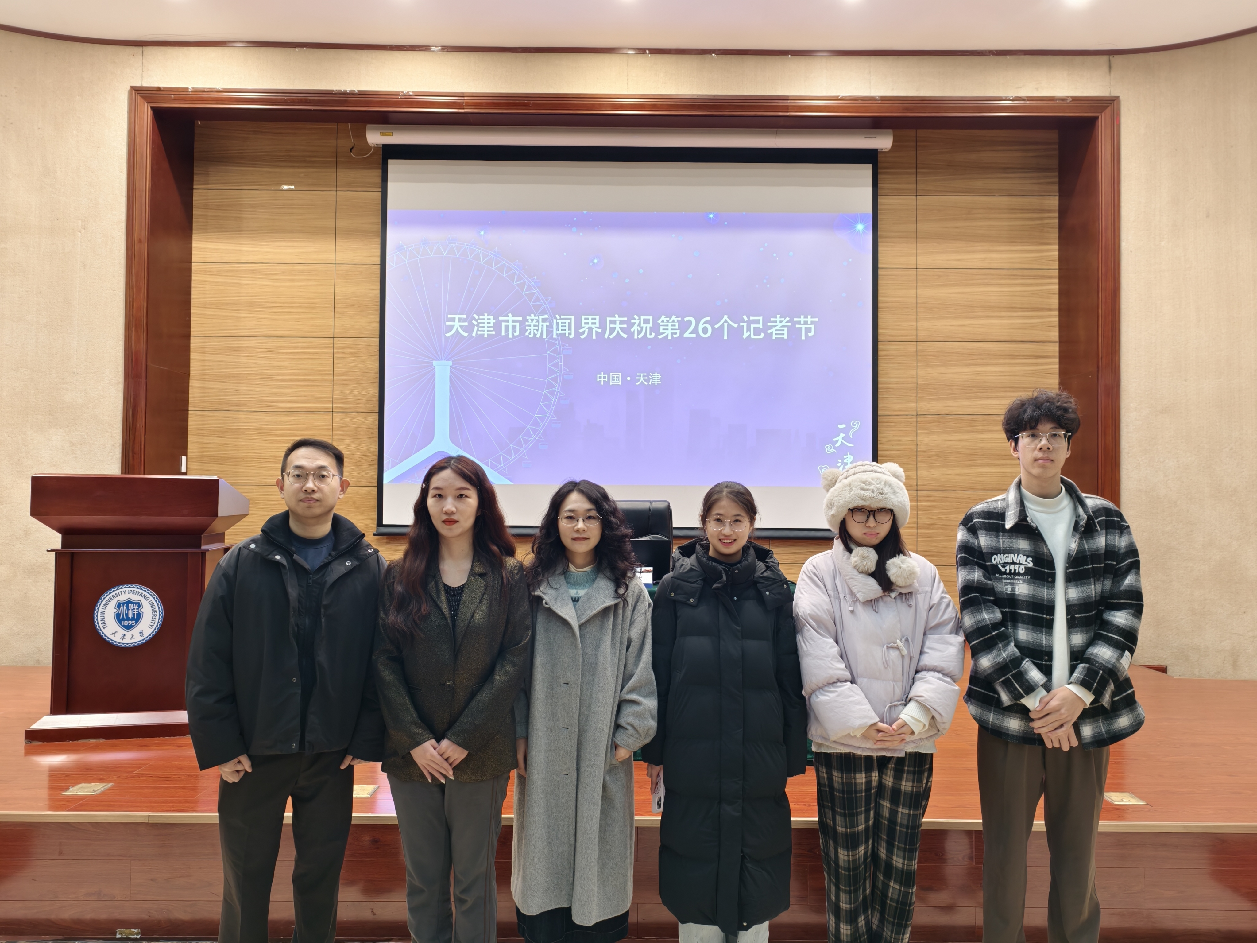 On November 7 at 9 a.m., Tianjin's celebration of China's 26th Journalists' Day was held in the lecture hall on the second floor of the Science Library at Tianjin University's Weijin Road Campus. A six-member delegation of faculty and students from the School of Information and Communication participated alongside representatives from the city's journalism community and journalism education sector at this industry gathering, which aimed to pay tribute to journalists' original aspirations and discuss the mission of the profession.