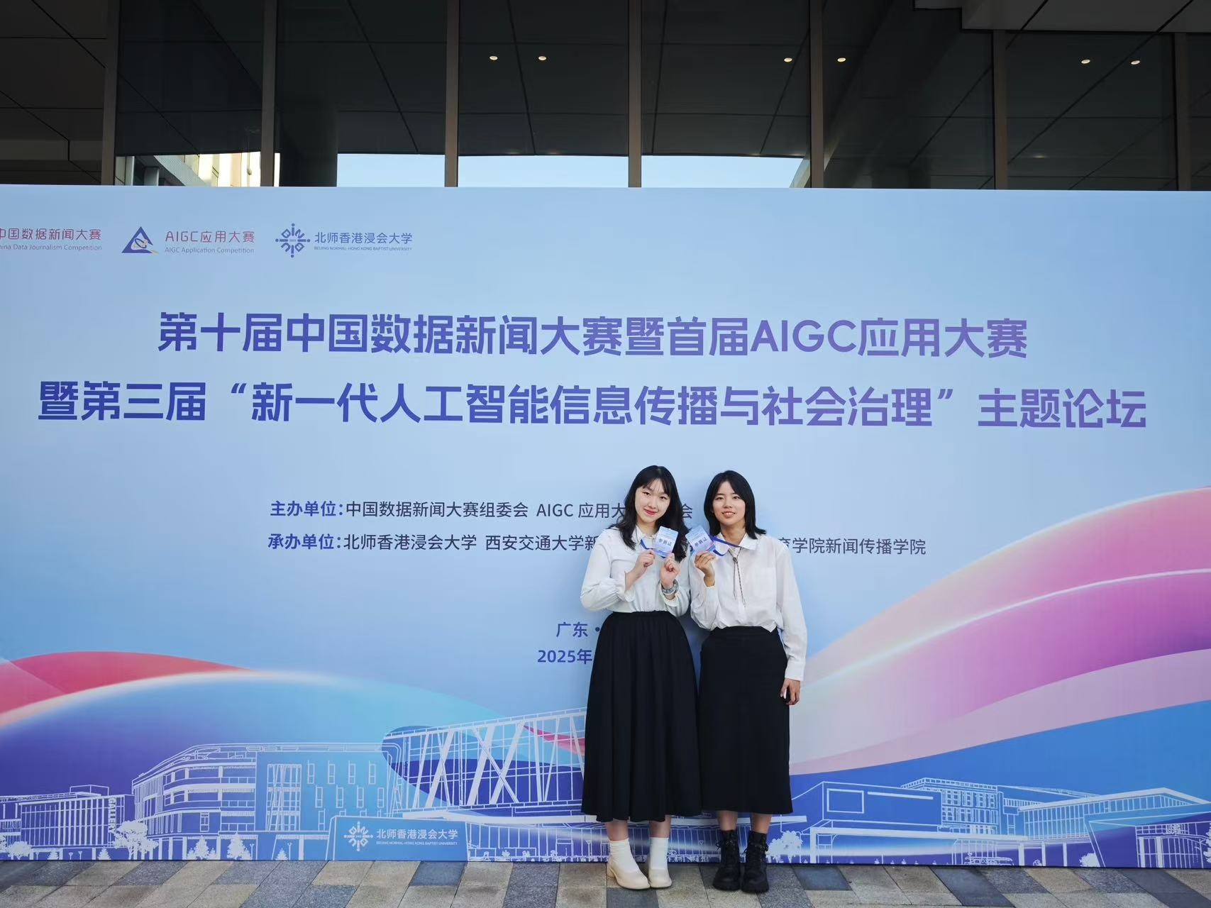 Recently, the 10th China Data Journalism Competition and the 1st AIGC Application Competition was held in Zhuhai. This year's competition attracted around 5500 participants from more than 1400 teams across over 300 universities nationwide. Competing alongside students from prestigious institutions such as Renmin University of China, Fudan University, and the Communication University of China, our students delivered outstanding results, securing one first prize, two second prizes, two third prizes, and the Best Data-Driven Award.