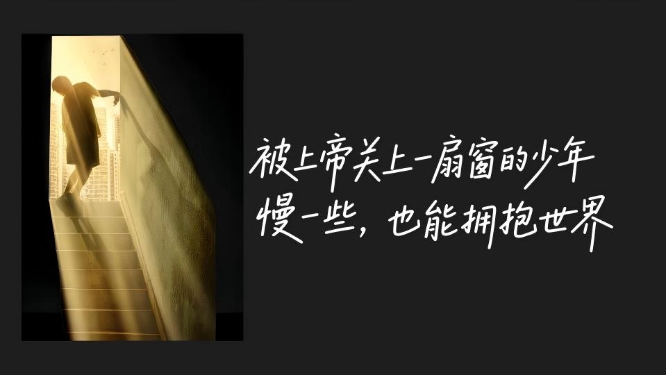 The work uses the film Big World as an entry point to focus on China's approximately six million people living with cerebral palsy. The work unfolds through a dual narrative structure: the data thread outlines clinical symptoms, family pressures, and the challenges patients face in education, employment, and relationships, while the story thread draws on eight years of posts kept by a patient named Yangyang on his WeChat public account. Both threads converge under the unifying theme of slowness - walking slowly, speaking slowly, learning slowly, yet embracing the world with courage. By integrating data from medical journals, authoritative reports, and social media, and utilizing techniques such as web scraping and sentiment analysis, the work aims to improve public understanding of cerebral palsy, dispel misconceptions and stigma, and present the complex and genuine realities of patients' lives.